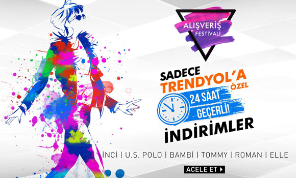 Trendyol kullanıcılarına özel 20-30 Eylül 2016 tarihlerinde sürecek festivalde, U.S. Polo, İnci, Tommy Hilfiger ve daha birçok sevilen markanın her güne özel 24 saatlik başka hiçbir yerde ulaşamayacağın indirimleri olacak. 30 Eylül’e kadar sürecek festival kaçırılmayacak fırsatlarıyla doludizgin devam ediyor.
